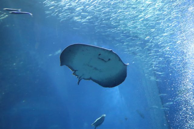 特に沖縄美ら海水族館の「黒潮の海」大水槽にいるジャイアントマンタが有名です。それは、幅が466cm、体重が630㎏もある世界最大のエイです。