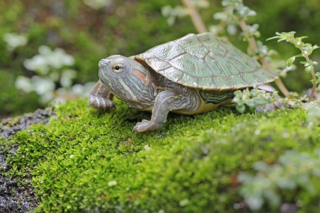 8月半ばに5cm未満のミドリガメ(ミシシッピアカミミガメ)を