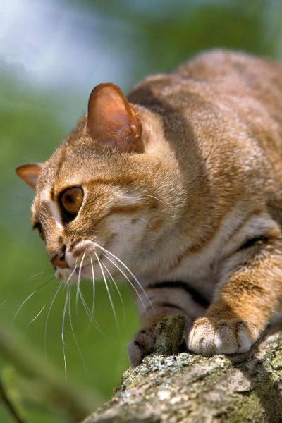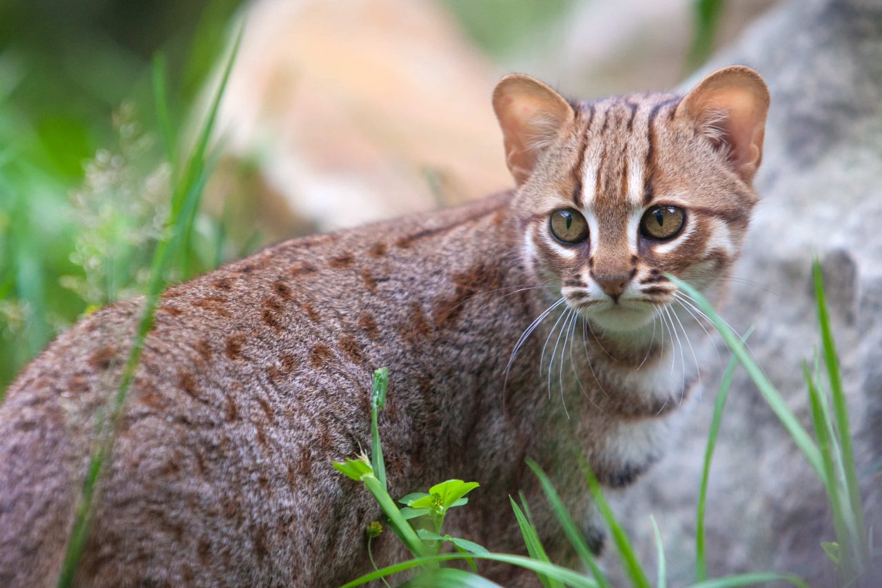 サビイロネコはベンガルヤマネコ属です。夜行性です。その名前の通り、さび色で、黒の斑点があります。スリランカに生息しているサビイロネコは、斑点が褐色です。スリランカのほうが、さび色っぽいです。目は琥珀のように輝いていて、耳もやや丸くて、超かわいいです。